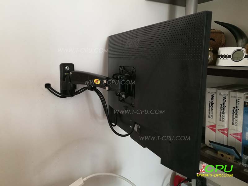 京东买的加长电锤钻头也到了(图40)。现在流行走背线,我这显示器的线也走背线。装电脑没见过用电锤的吧,开开眼。弄好的样子:显示器背面(图41)、(图42),显示器墙背面是储藏间(图43),机箱处(图44),看看是不是清爽了(图45),原来是有两根黑线。绿联3米HDMI线是用在这里,电源线我是用了两根三芯电源线接起来的。