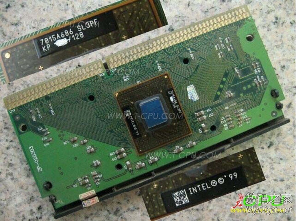 这次说奔腾III赝品。为啥跳过奔腾II呢。在Intel锁频后,造假难度高了,市场上假货少了。当然假货还是有的,比如奔腾PRO就有复刻版,我手里没有就不说了。奔腾II改用SECC单边接触卡盒封装,再加之锁频,造假难度非常高,虽然Intel也出现移动版本PII,但是做到盒子里难度很大,目前未见到PII赝品(也许有)。有一种是IBM把slot 1赛扬加了个壳用于其品牌机上,外表看是PII,不过那个为了稳定,不算造假。