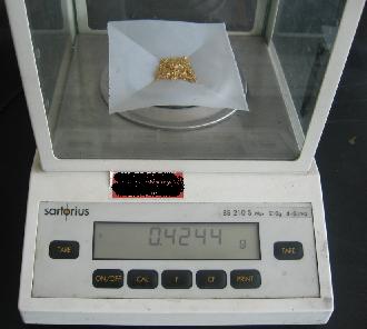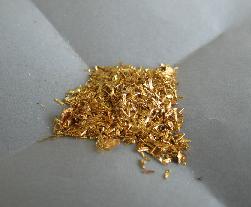 今天带着相机去去单位照相,下图是提纯出的金片,黄橙橙亮闪闪,实在是很诱人啊,怪不得大家都喜欢。