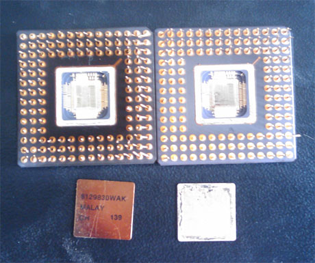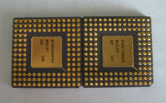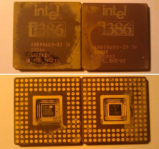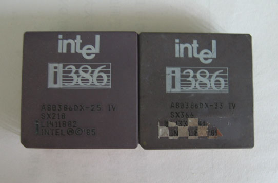 刚刚完成两块Intel 486的洗金实验,结果还不错。这个又激发了我试验的兴趣,于是今天又拿了两块Intel 386来做试验,看看结果如何。主角登场: